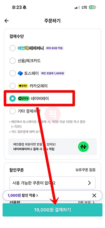배달의민족 앱에서 네이버페이로 결제하는 방법은 그냥 간단합니다.