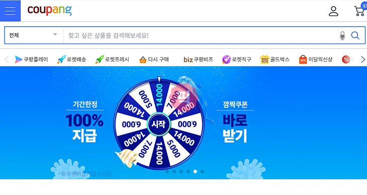 1. 쿠팡 앱 또는 홈페이지 메인에 있는 쿠폰 혜택 배너를 클릭합니다.