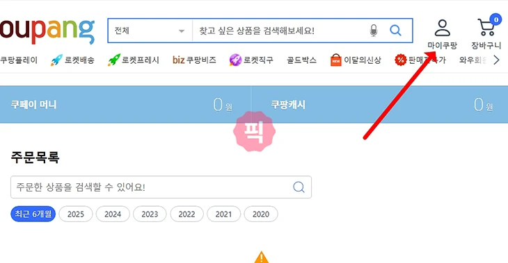 PC에서 쿠팡 홈페이지에 접속합니다.