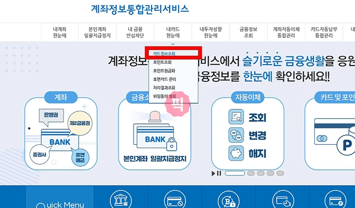어카운트인포 – 내카드 한눈에 서비스 이용하기