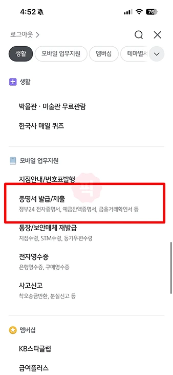 KB스타뱅킹 통장사본 발급 방법