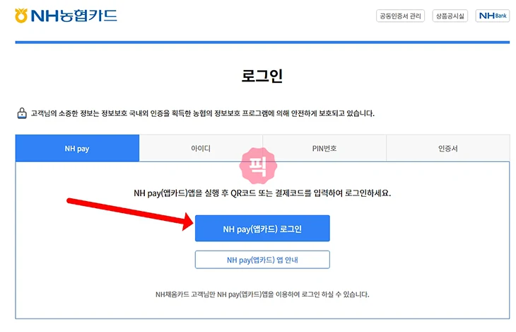농협카드 홈페이지에서 NH Pay 로그인하는 방법